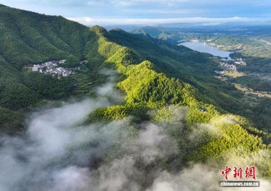 安徽休寧:秋日晨霧勾勒山川朦朧美